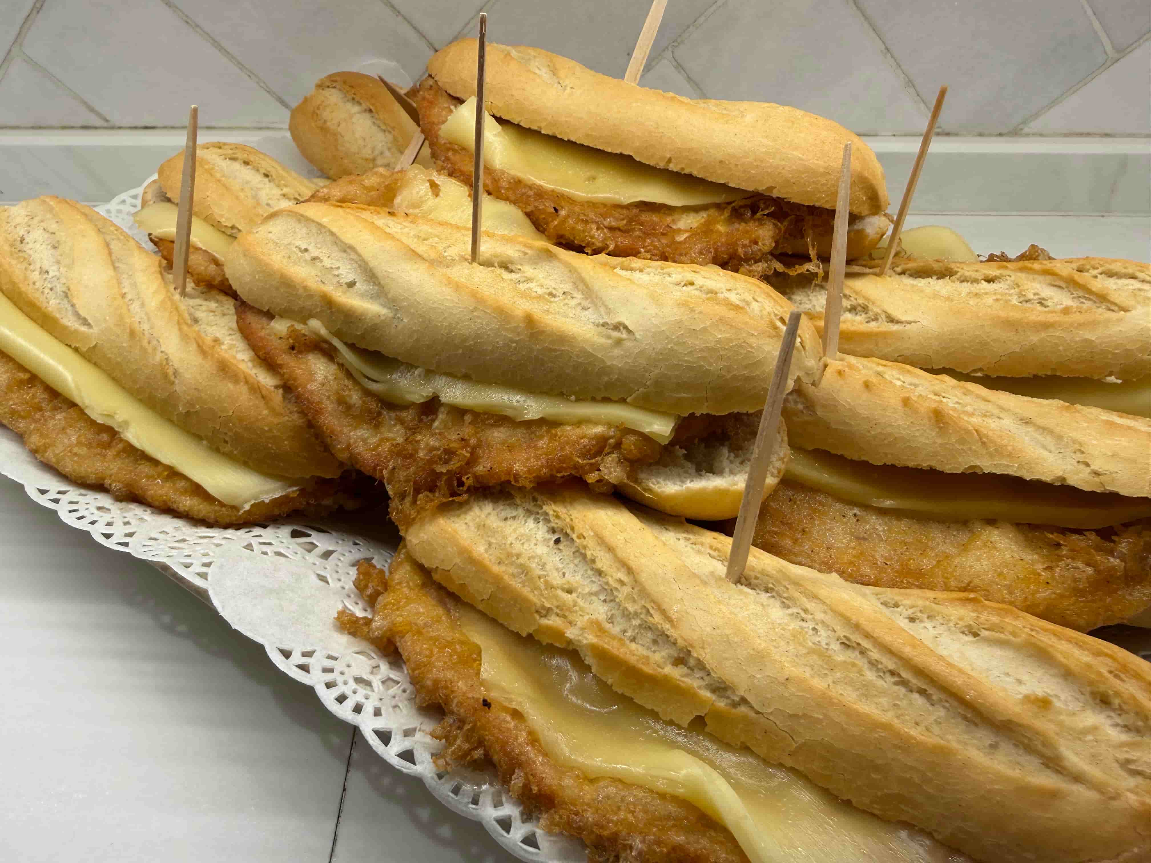 Montadito de lomo rebozado y queso.