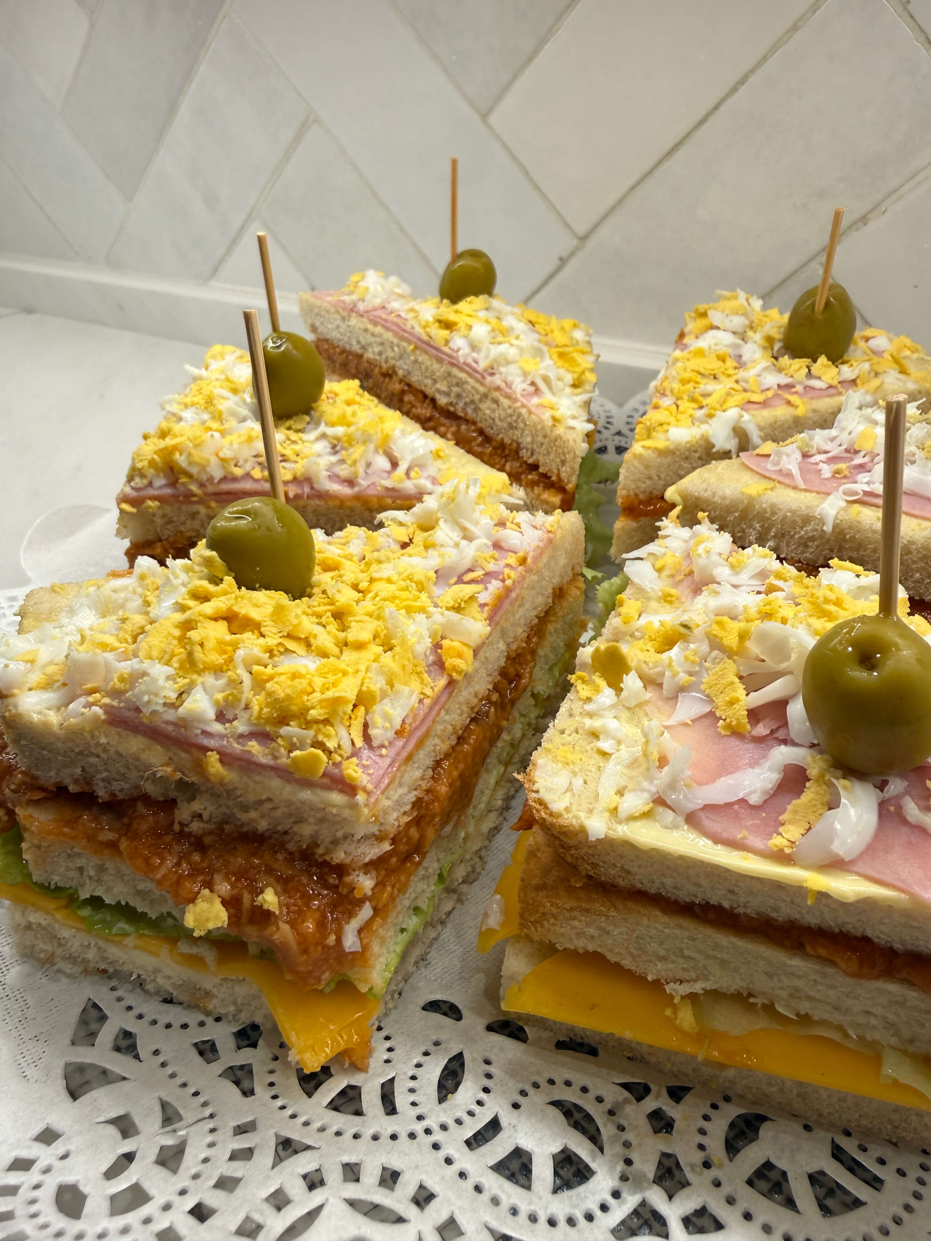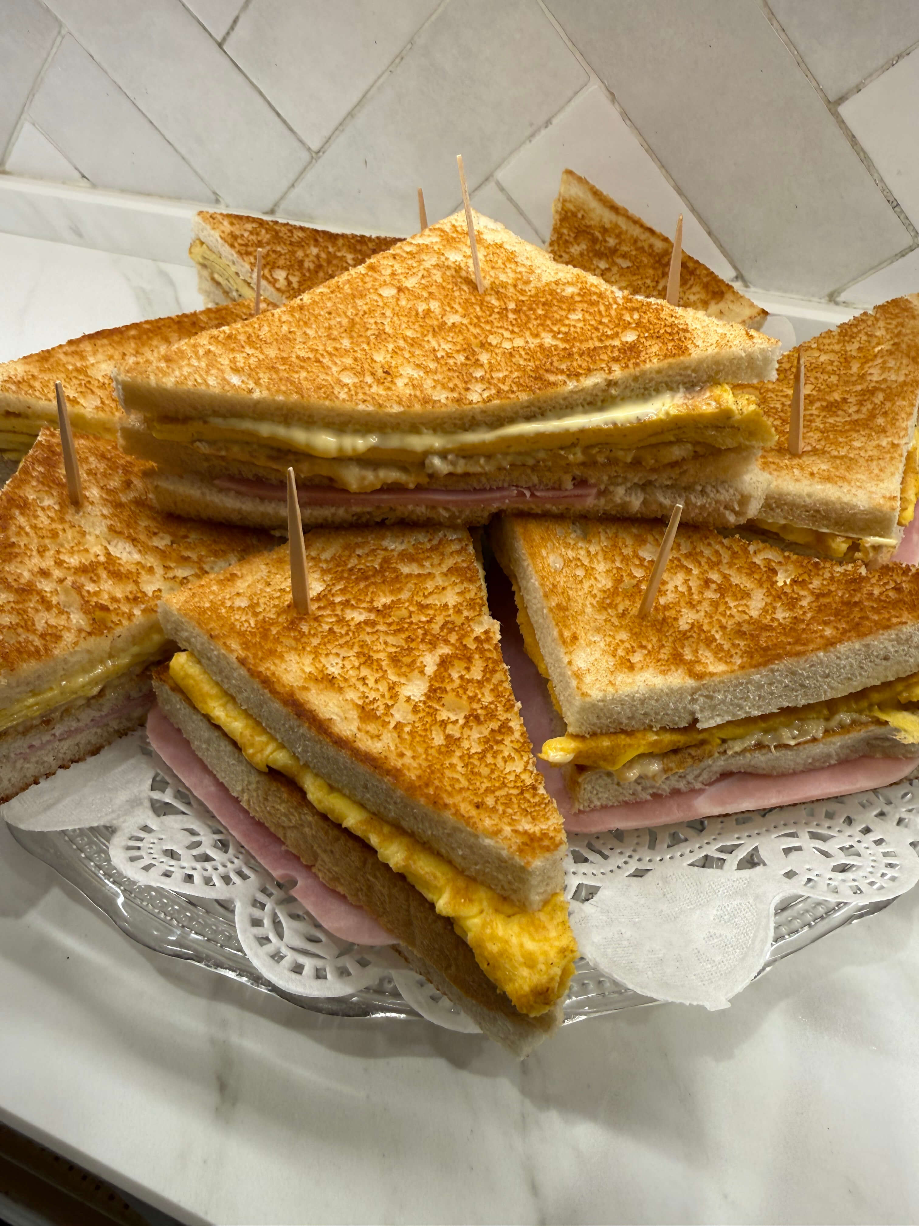 Sándwich tostado, York, huevo plancha, atún y mayonesa.