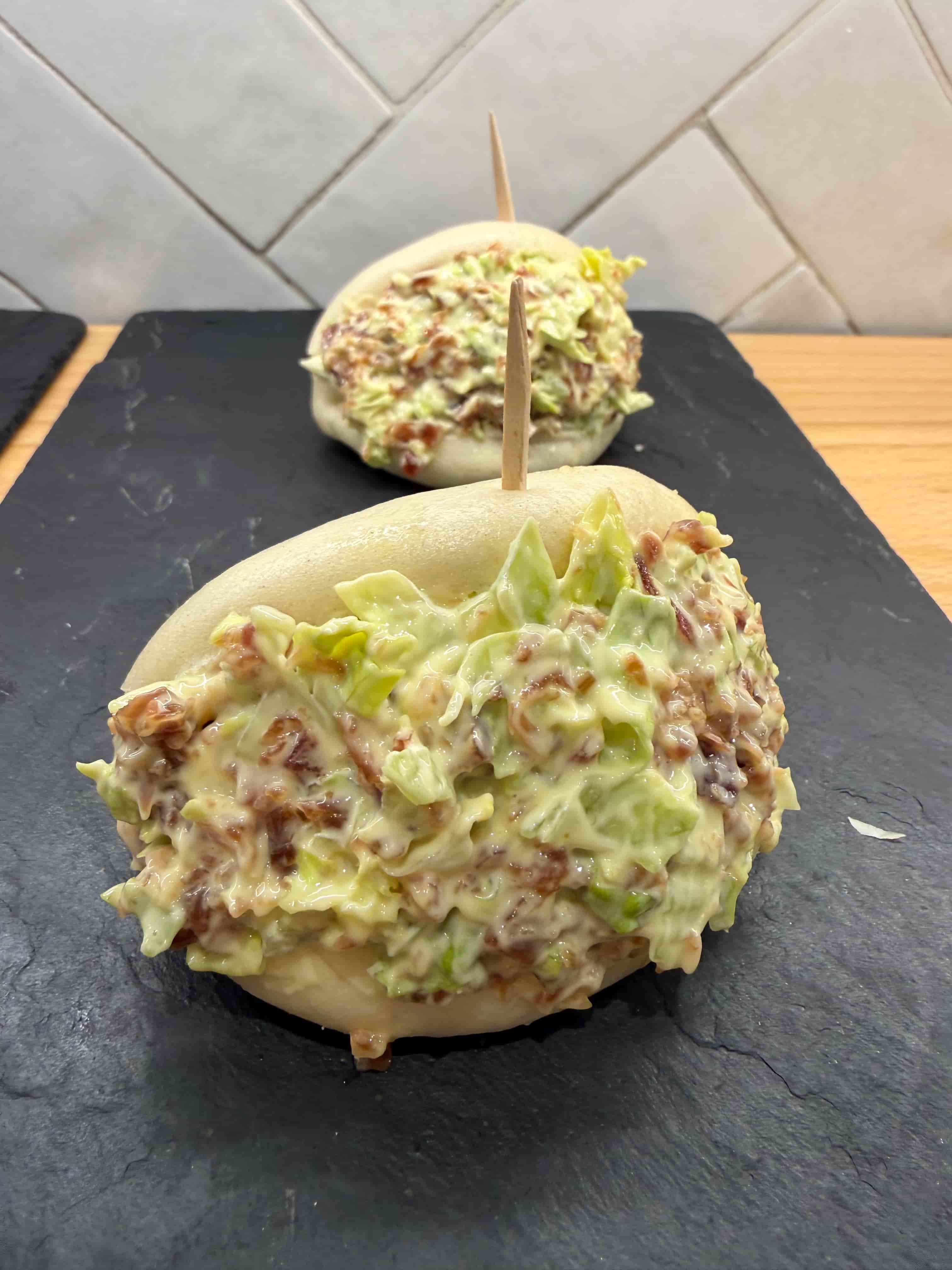 Pan bao con jamon serrano picado, lechuga y mahonesa.