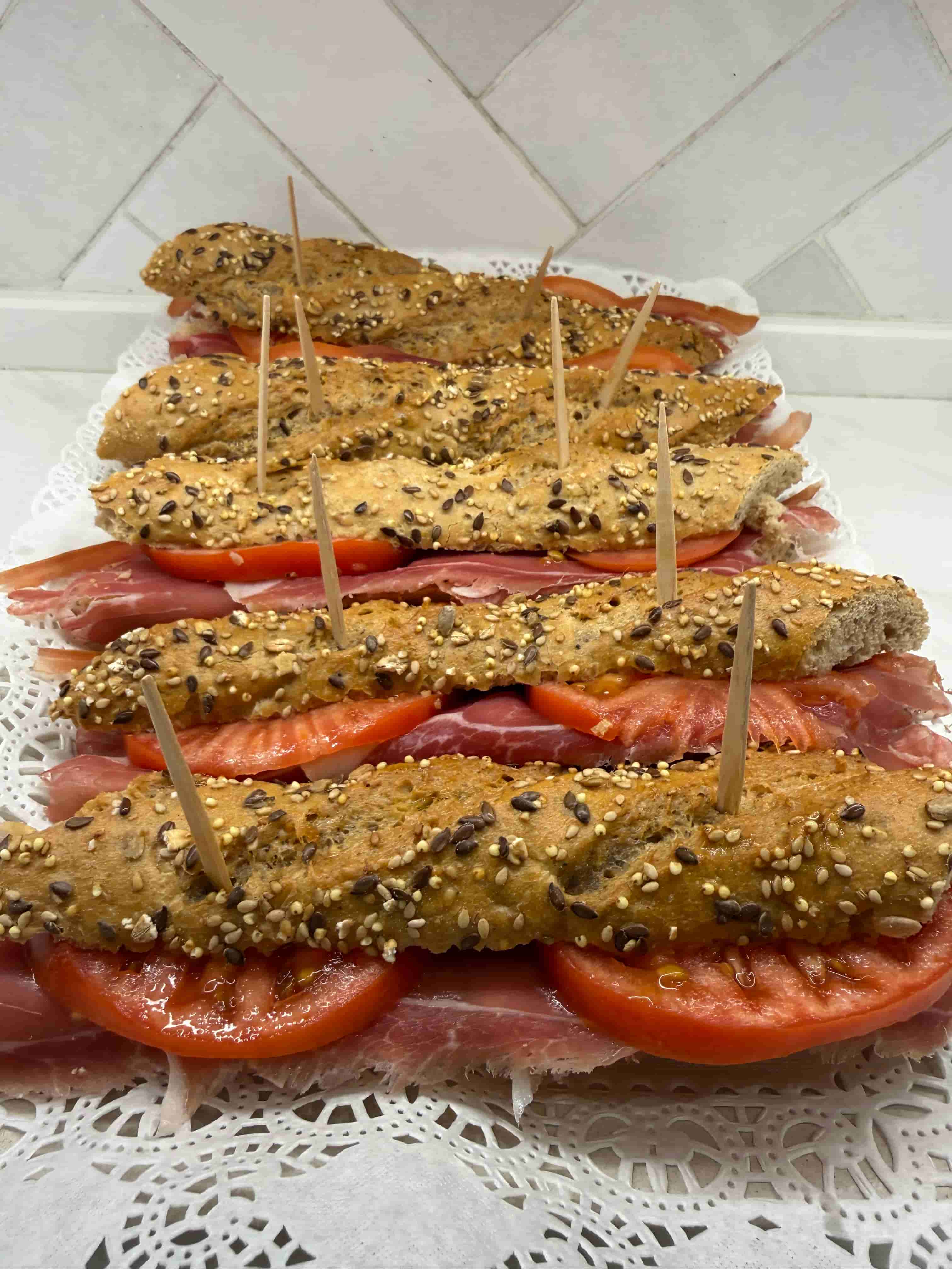 Flauta multicereal con jamón serrano y tomate natural.